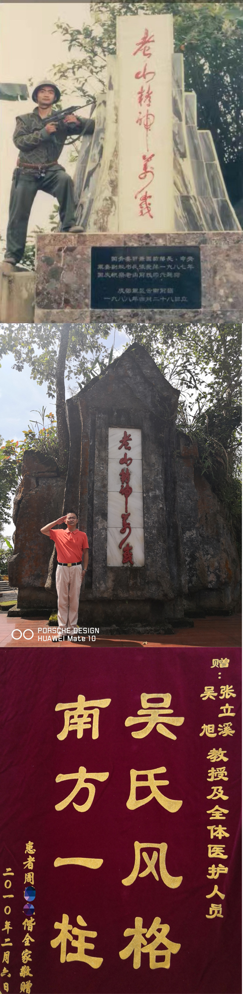 1988年 1988年第三军医大学毕业后执行中央军委命令,赴云南老山前线代职锻炼,1988年10月17日13军37师111团组织敢死队出境搜剿1125.0高地之敌,签下血书誓死参加敢死队,成为赴老山前线的78名代职锻炼的应届军校学员中,唯一的参加敢死队出境作战的学员,荣立三等战功;